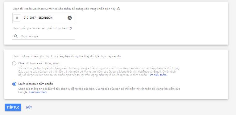 2.5. Tạo chiến dịch Mua Sắm – Google Shopping