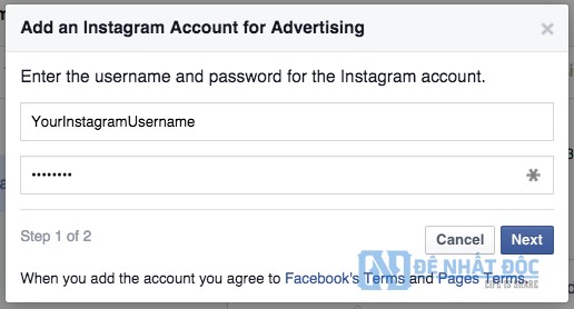 – Điền thông tin đăng nhập Instagram bao gồm Username và Password vào, bấm Next.- Kiểm tra các ô trống cạnh mỗi tài khoản quảng cáo và cấp quyền truy nhập cho tài khoản Instagram của bạn. Hoặc bạn có thể click vào “Assign Ad Accounts” và tích hợp các tài khoản quảng cáo của bạn sau.